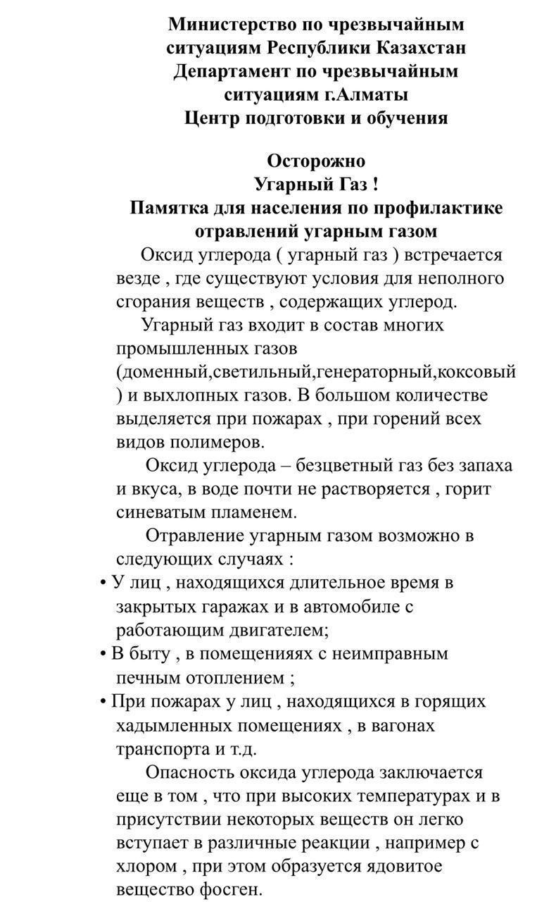 "Осторожно угарный газ!" » КГКП "Ясли-сад №72"