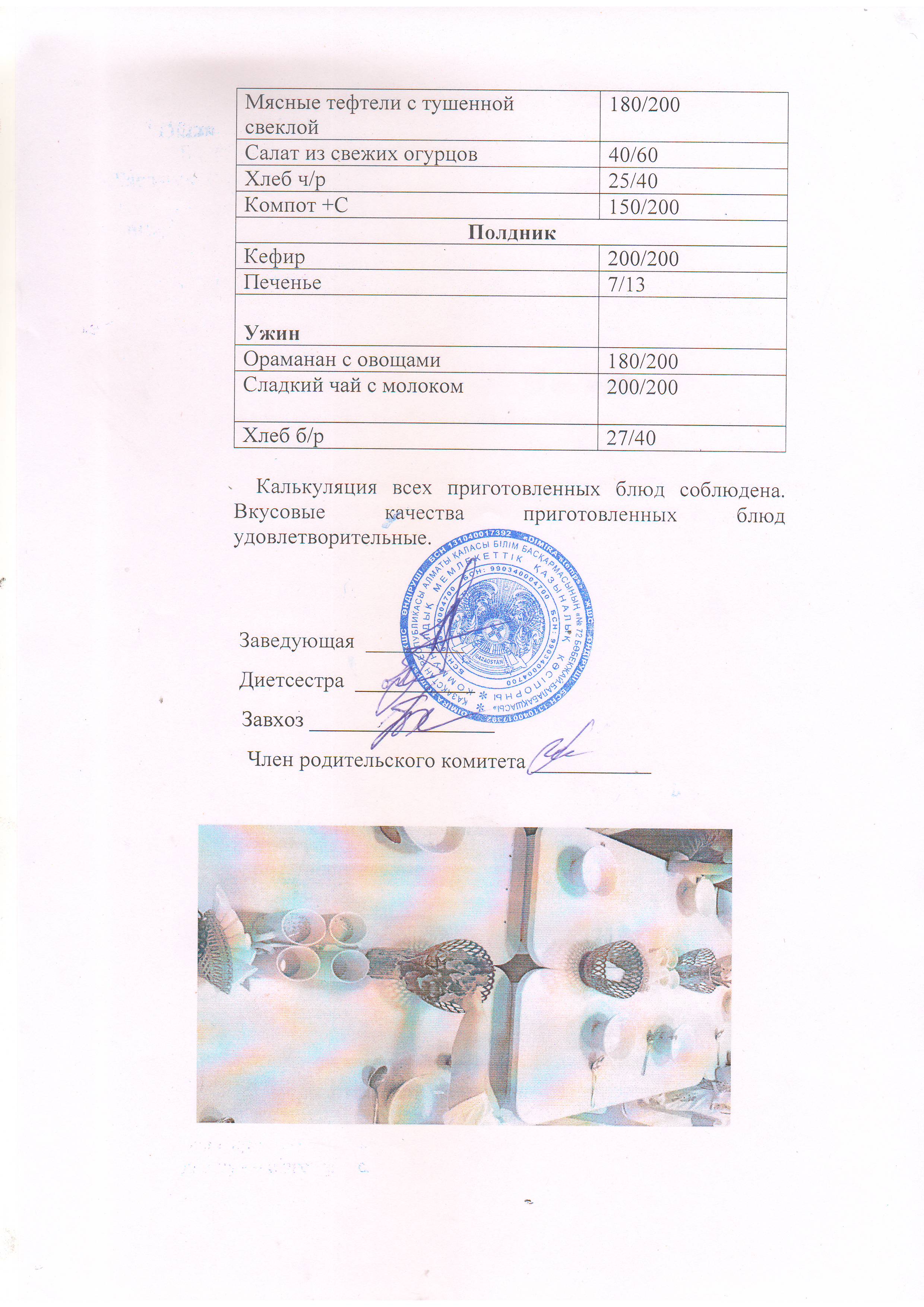 Протокол бракеражной комиссии » КГКП "Ясли-сад №72"
